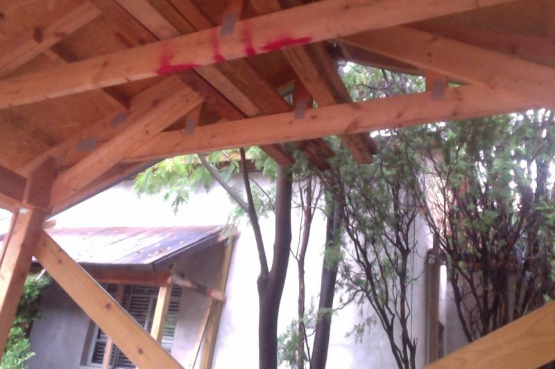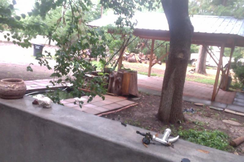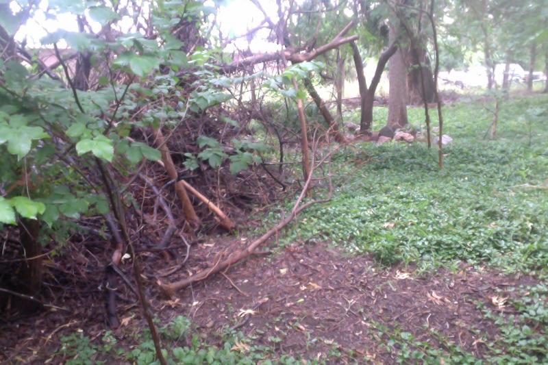There is a staircase in that playhouse. It leads to the roof of the garage, for first-rate views of the enemy (and the friends hiding in the copse below.)