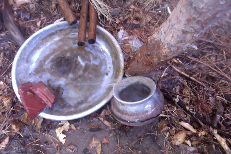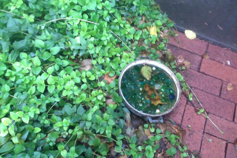 The bottom photo shows a pot at the end of a small iffigation system -- it fills first, then dumps the water into a large saucer, and then the water runs out onto the ground. This leaves fresh water for birds and lizards.