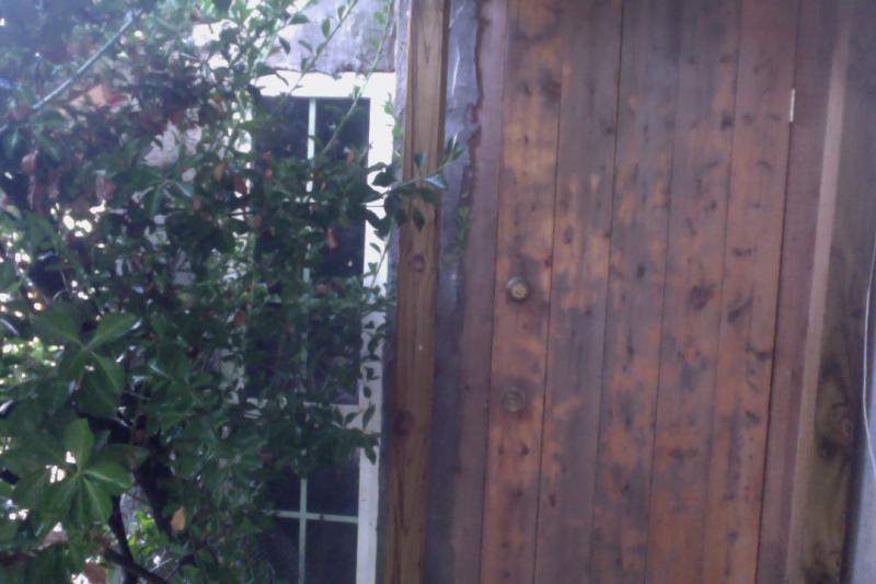 The bottom photos are of the 'hovel.' You've heard of tiny houses. Well, this one is 45 square feet. It's just a summer bedroom, really, but very pleasant -- open the door and look out under the euonymous bushes. A heating pad, and candles, work to take the chill off fall days.