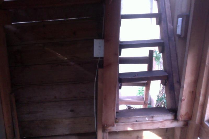 The bottom playhouse pic shows the enclosed stairs going up to the roof of the garage.