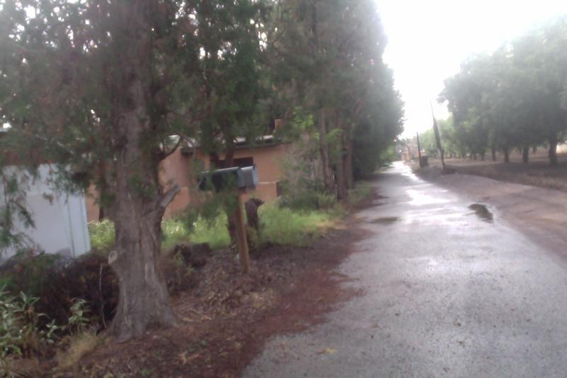 Above: the last house on the lane. the huge trunks were gorgeous cottonwoods before the drought. Gandy's Corners is between the first and second trunks.